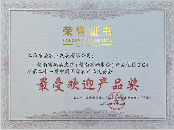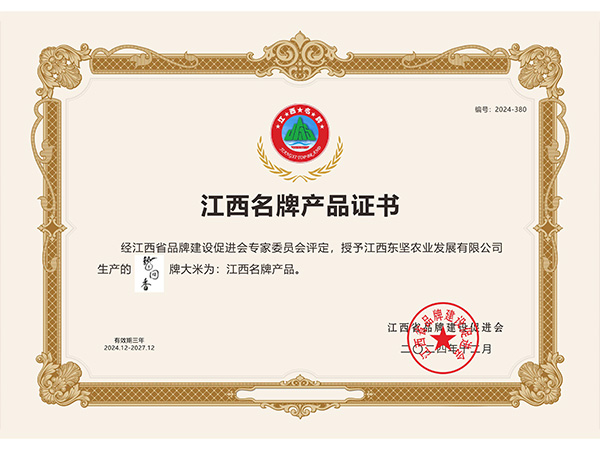 • “東堅”系列大米產品為“江西名牌產品”,“江西省專精特新中小企業”,“高新技術企業證書”。